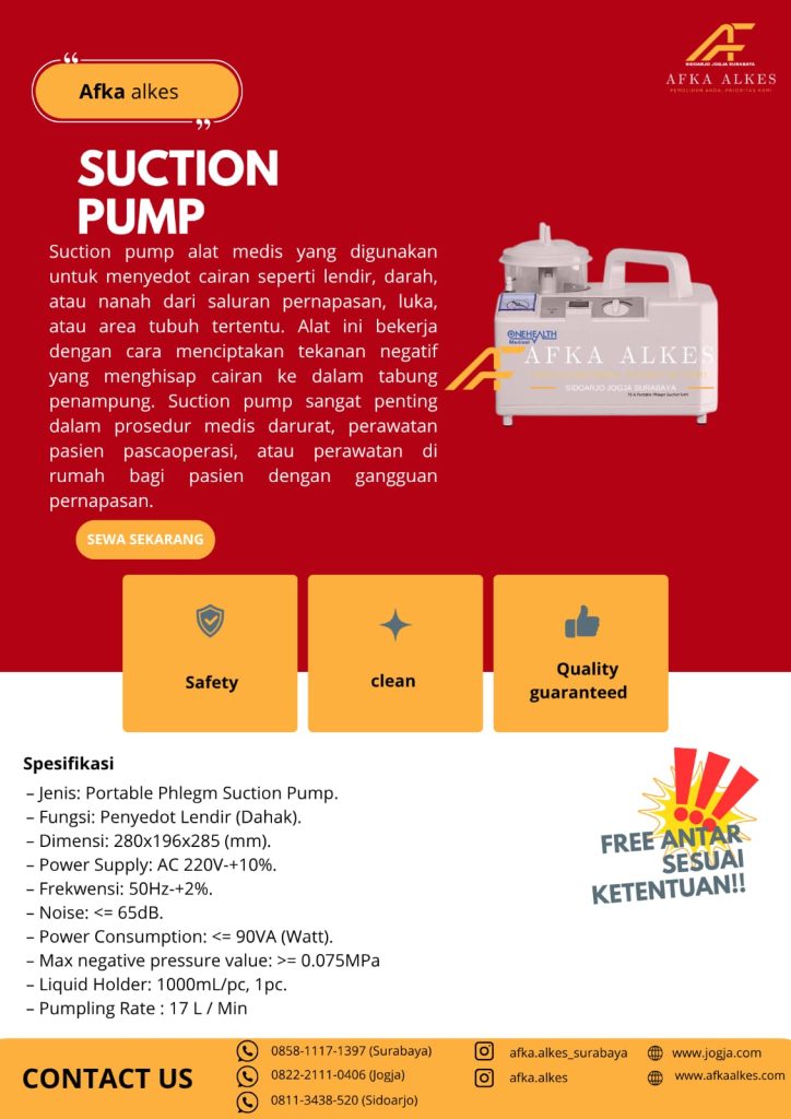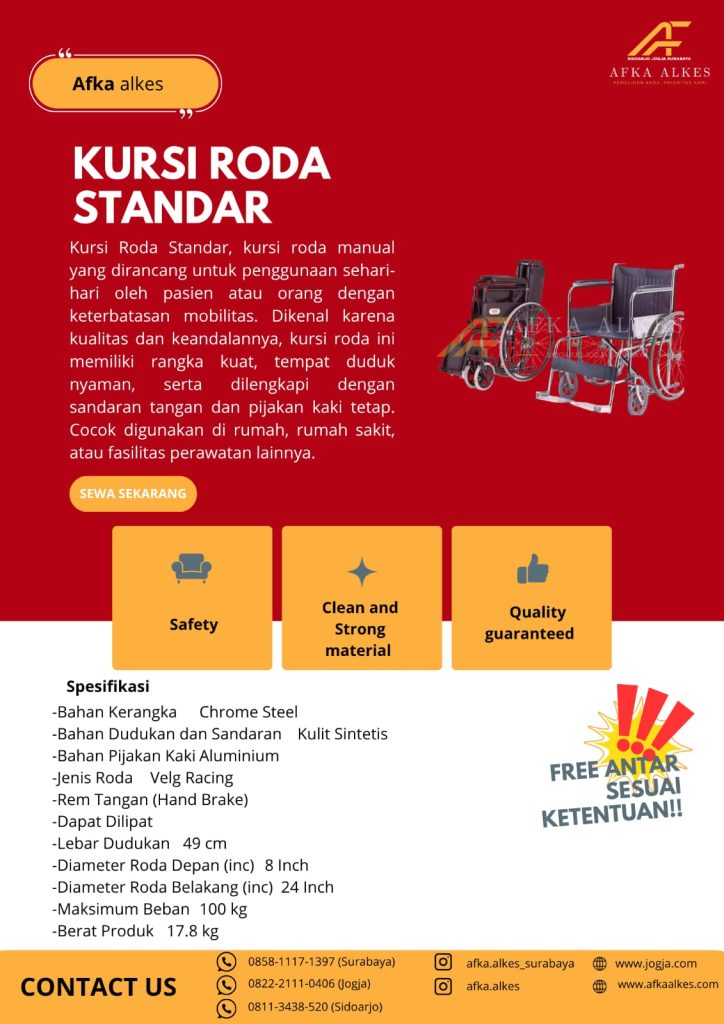 Afka Alkes adalah penyedia layanan persewaan alat kesehatan (alkes) terpercaya yang berkomitmen memberikan kemudahan bagi masyarakat dalam memenuhi kebutuhan medis. Kami hadir dengan berbagai pilihan alat kesehatan, mulai dari alat bantu jalan, alat bantu pernapasan, kursi roda, tempat tidur pasien, hingga suction pump, yang semuanya dalam kondisi bersih, terawat, dan siap pakai.