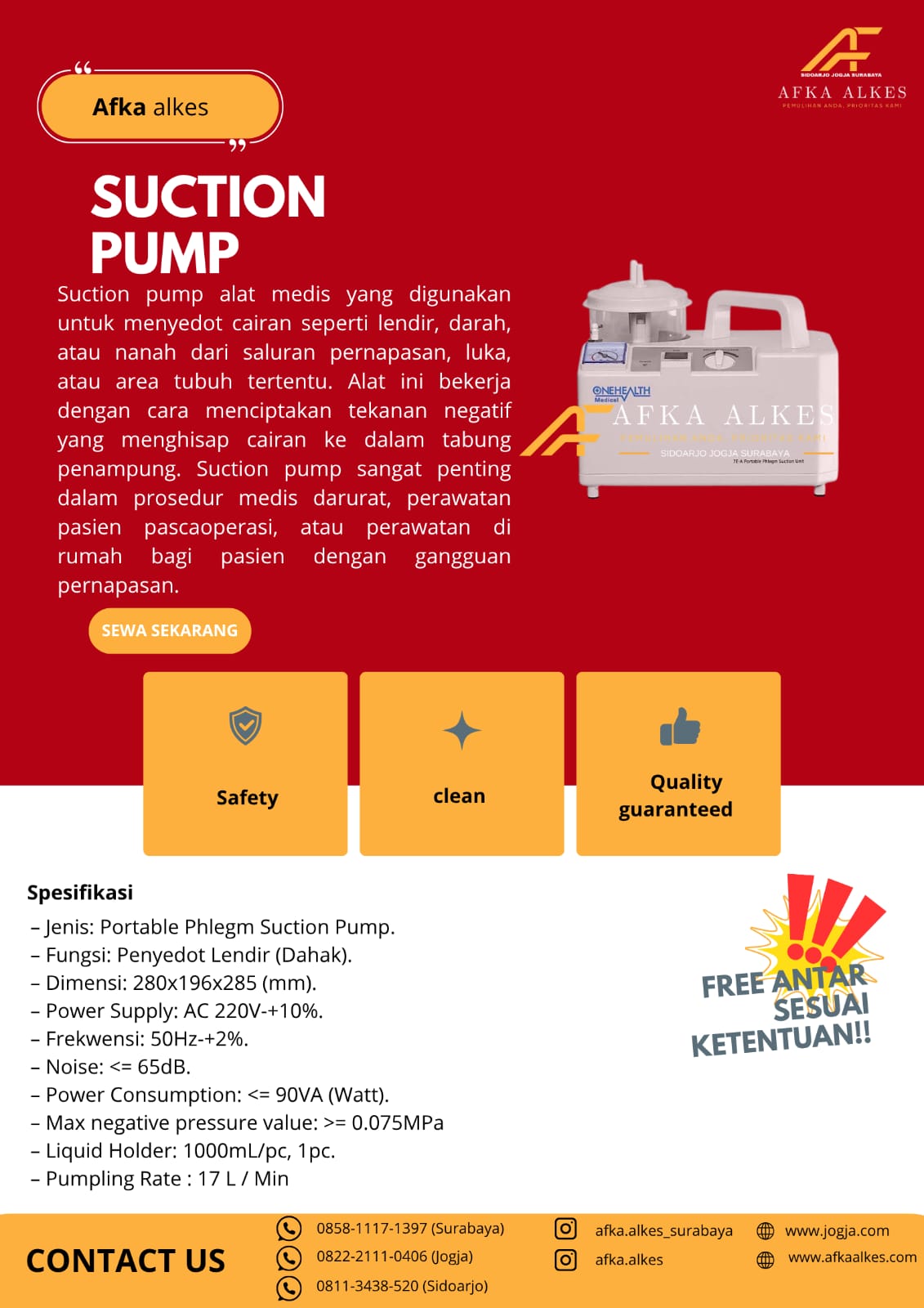 Telah menjadi pilihan banyak keluarga, pasien, klinik, hingga rumah sakit sebagai mitra terpercaya dalam menyediakan alat kesehatan. Tersedia dikota Surabaya, Jogja, SidoarjoMitra terpercaya